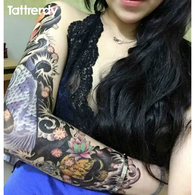 Us 1 89 22 Off Warna Warni Tengkorak Besar Palsu Sementara Tato Penuh Lengan Tato Keren Stiker 48 17 Cm Desain Flash Ikan Tahan Air Pria Wanita - Download