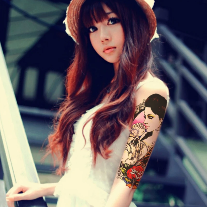 Us 1 2 38 Off 2 Pcs Seni Tubuh Eksotis Makeup Keren Palsu Tato Seksi 3d Tahan Air Tato Sementara Stiker Serigala Dan Gadis Cantik In Sementara Tato - Download