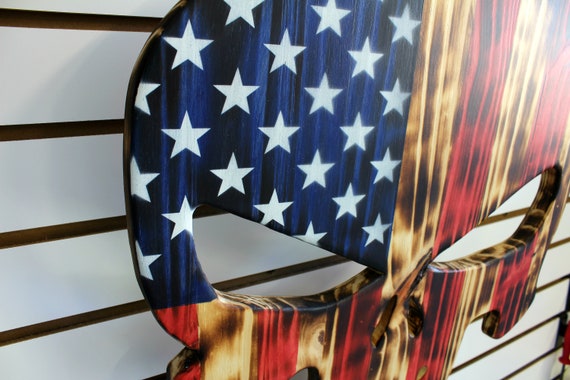 Giant Wood Punisher Skull American Flag Wooden Flag Punisher Skull Punisher Flag Skull Decor Gift For Him Wood Skull Torched Wood