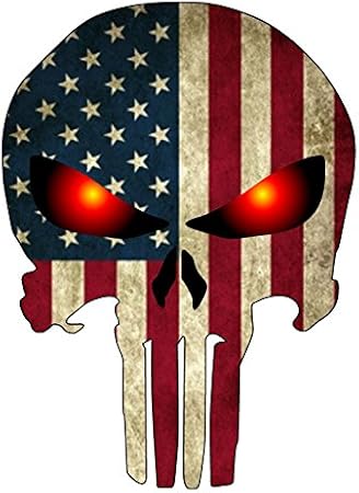 Boldergraphx 3014 Punisher Skull With American Flag And Glowing Red Eyes 5 X 4