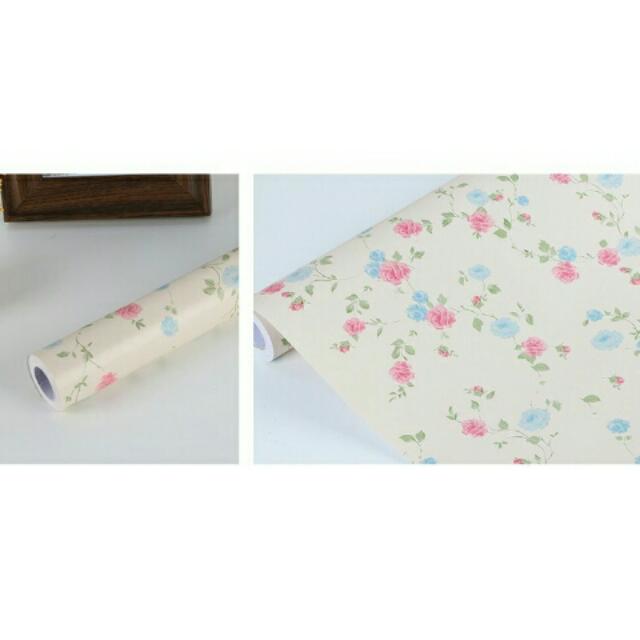 Wallpaper Dinding Motif Rose Pink Biru Uk 10 Meter Home